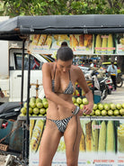 Malai Bikini features a soft zebra print fabric with a minimal, sculpting cut.