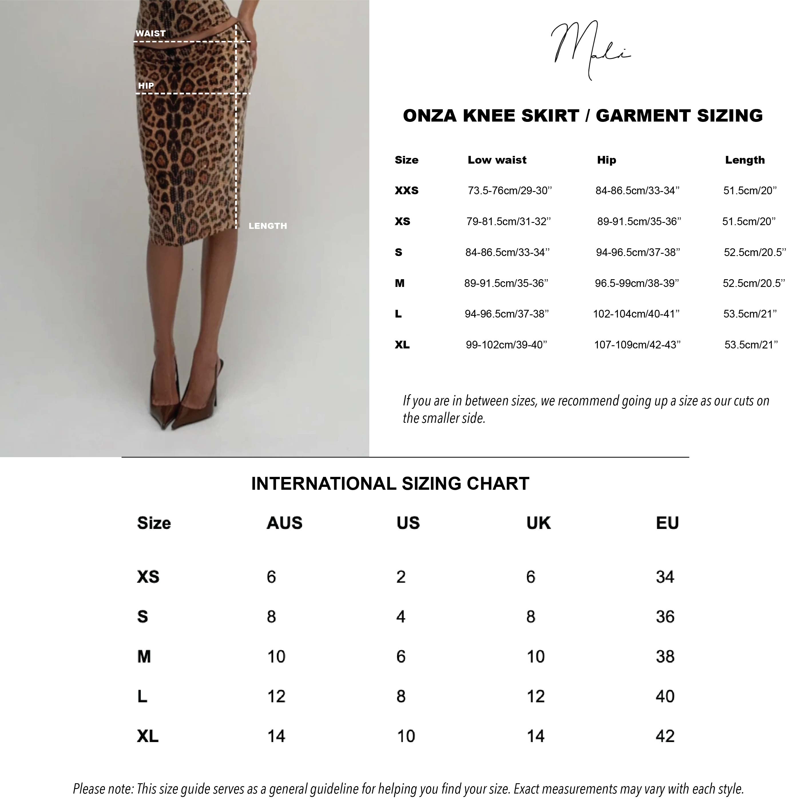 Bring the drama in our statement leopard midi skirt. designed to sculpt, shine and detailed to stand out. Pair her with the Onza corset for a complete look or mix her up with our basics for a more relaxed but still spicy look