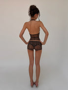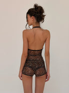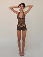 Designed with a plunging halter neckline and sculpted silhouette, Kanya softly contours the body while maintaining a lightweight, second-skin feel. The delicate trim along the neckline adds subtle definition, while the semi-sheer finish enhances its effortless allure.