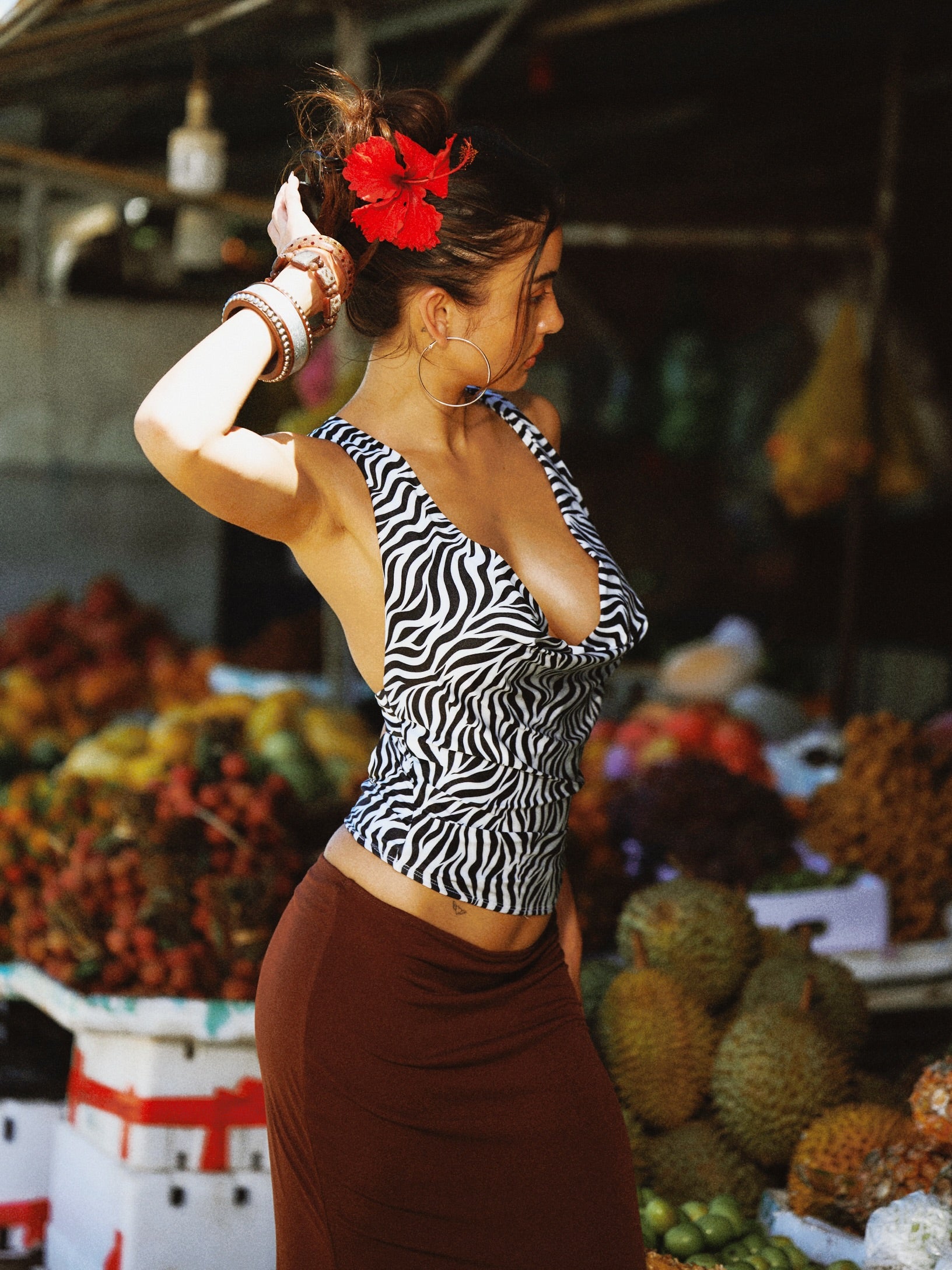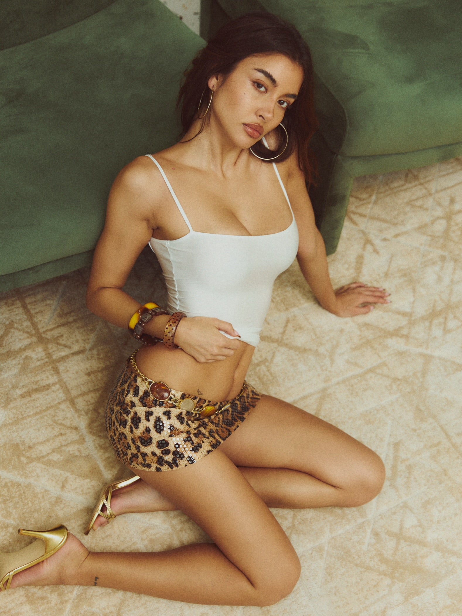 Our first drop is a playful mix of animal prints, orchid florals, and tassel skirts to capture that feeling of being somewhere wild. Every piece was made to move with you, feel-good, feel-sexy kind of pieces.