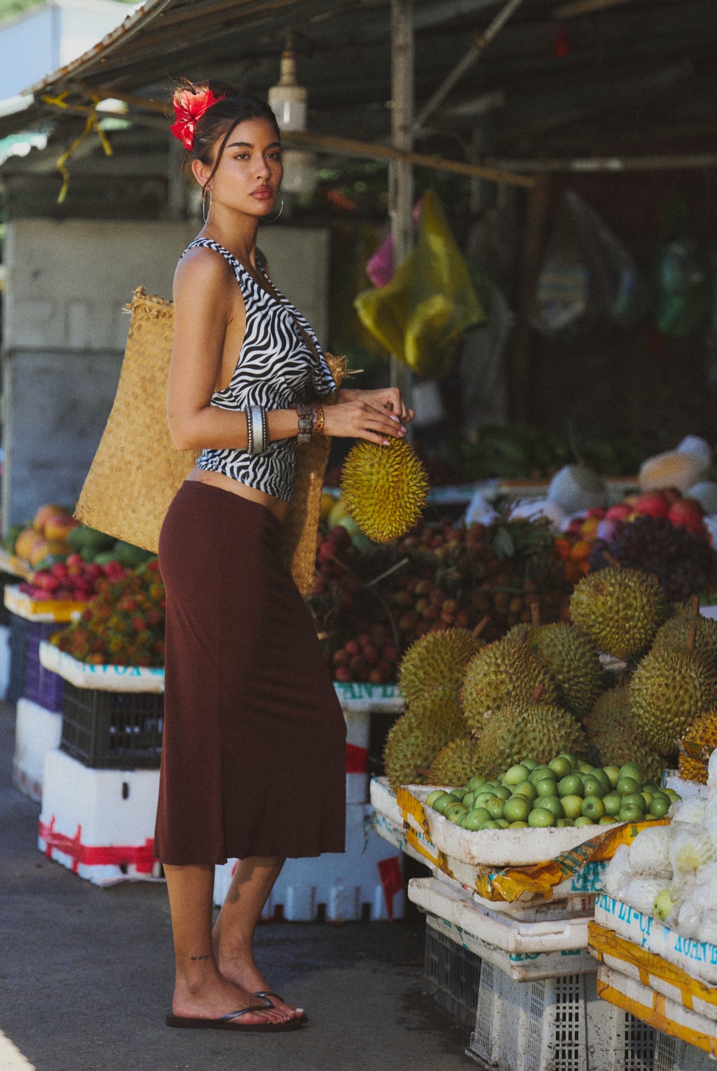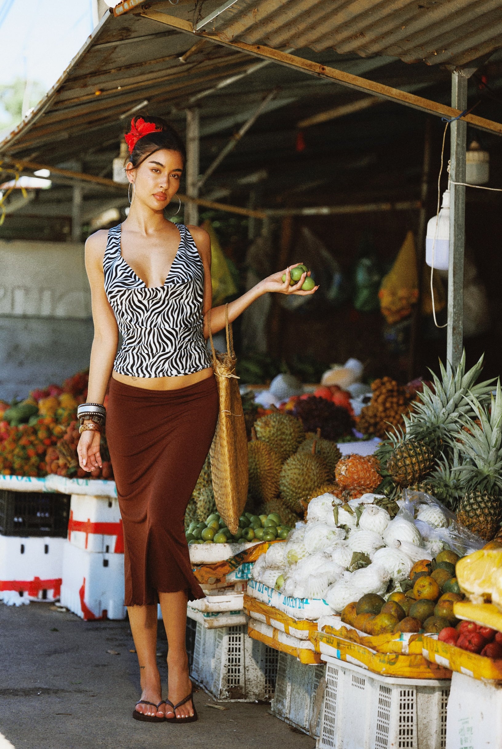 Our first drop is a playful mix of animal prints, orchid florals, and tassel skirts to capture that feeling of being somewhere wild. Every piece was made to move with you, feel-good, feel-sexy kind of pieces.