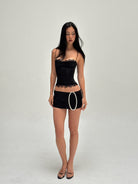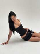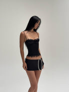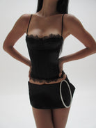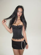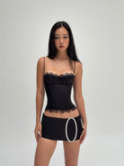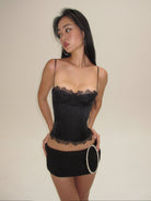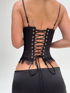 A timeless piece that will last a lifetime, this corset is designed to sculpt while keeping it effortlessly wearable. Finished with delicate lace trims and soft satin in super black.